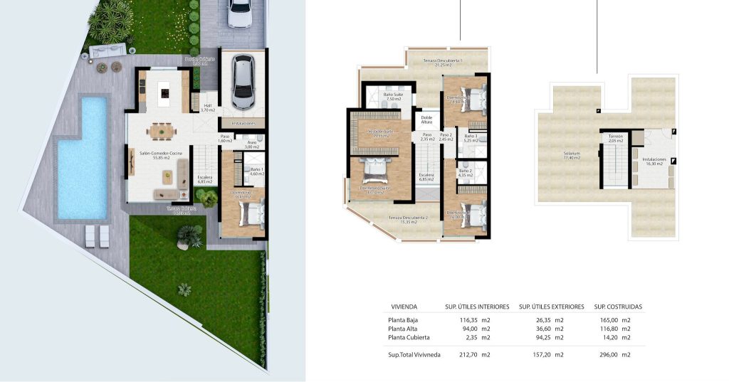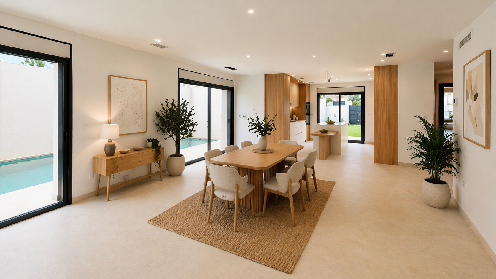 Modern design & bright spaces — With 295 m² of built area on a private 530 m² plot, this villa offers a spacious, open-plan layout, large windows and lots of natural light.